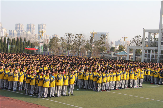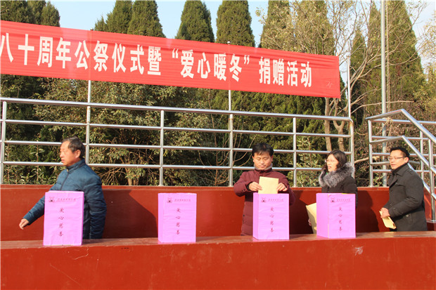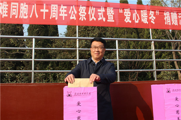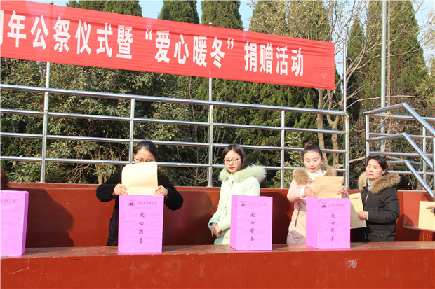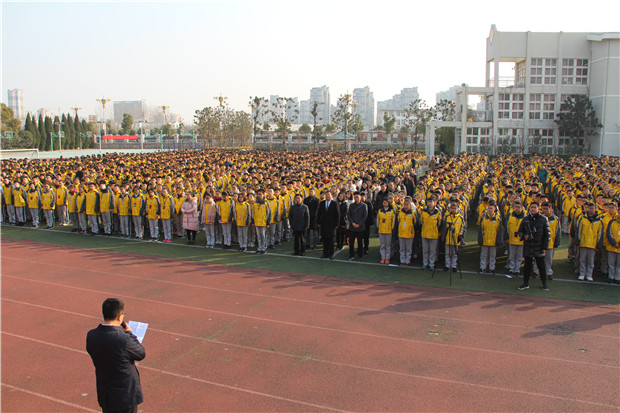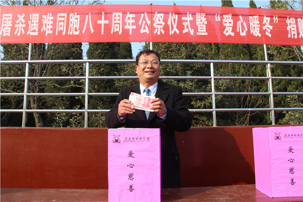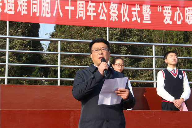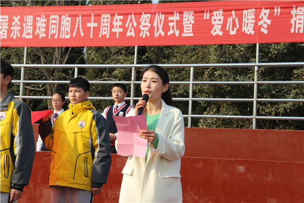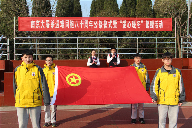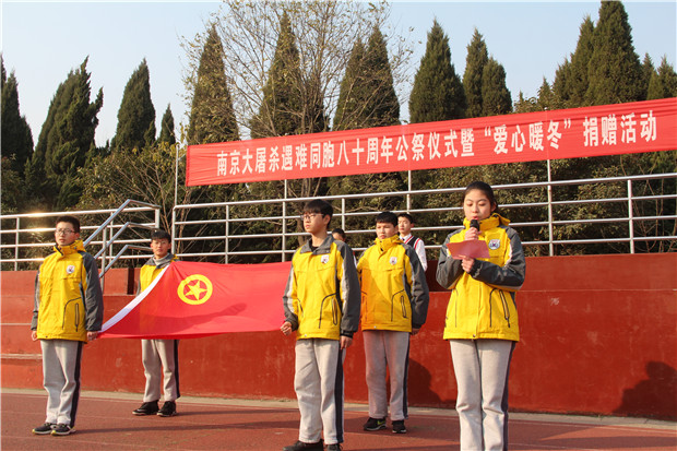 2017年12月13日,淮安外国语学校全体师生庄严集会,举行南京大屠杀遇难同胞八十周年公祭仪式暨“爱心暖冬”捐赠活动。