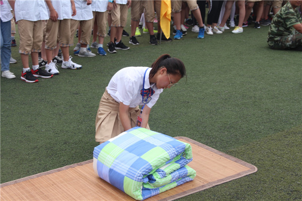 小小“豆腐块”,尽显学生风流。经过几天的锻炼,住校生们已熟练地掌握了叠被子这一基本技能。为丰富“青春训练营”生活,9月3日上午,淮安外国语学校组织初一新生进行叠被子大赛。