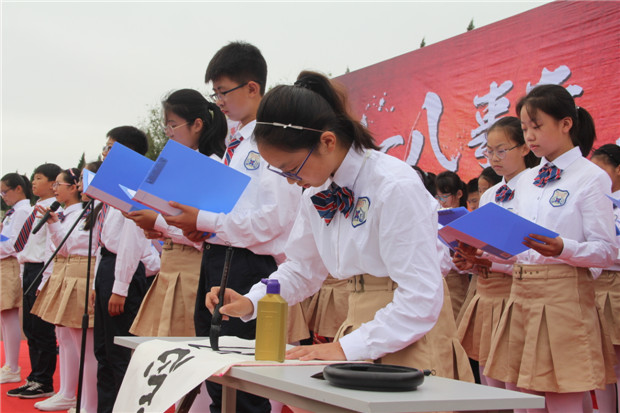 初一18班同学带来了书法展示和诗歌朗诵《勿忘国耻,振兴中华》。在同学们深情的朗诵中,在场的学生与家长无不为之动容。学生们渐渐明白,真正的爱国行动不是单纯的耻辱记忆,也不是简单的纪念仪式,更不是偏激的仇恨,而是要居安思危。只有不断在教训经验中前进,我们才能不断进取,不断发展,不断进步。