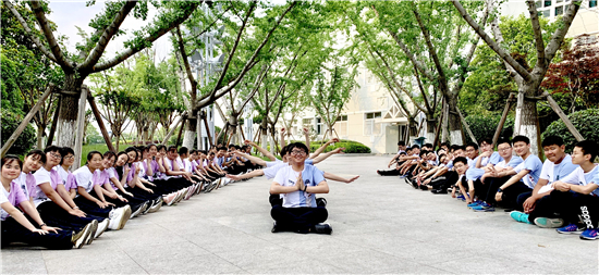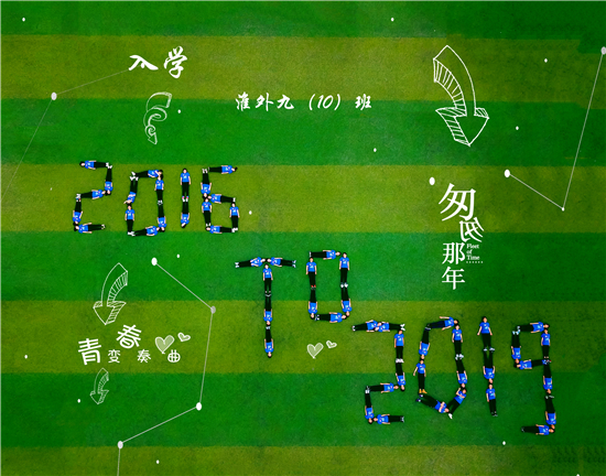 以绿茵场为背景,用航拍器做眼睛,通过创意造型配上文字“重现”初中生活片段……2019年5月下旬,拍完毕业照后,淮安外国语学校初三各班相继拍摄创意毕业照,学生们说,想用这种方式留住陪伴自己三年的花与树,留下最灿烂搞怪的青春笑颜。