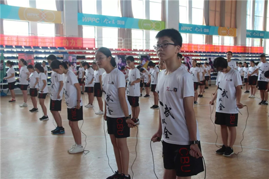 不知不觉五天的学习生活就这样过去了,今晚迎来了拳击和跳绳的表演赛。每个营队迈着整齐的步伐走向舞台的中央,他们大声喊出属于自己的口号,向这个世界宣告“胜利是属于我们的”。音乐一响起,大家整齐的摆出拳击动作,跟着教练一起表演拳法。表演赛场上男生个个顶天立地,口号响亮;女生巾帼不让须眉,动作整齐有力,充分展示了自己的气势!音乐声音一停,所有同学齐喊“哈”,然后摆出最后帅气的pose。全场掌声雷鸣,尖叫声,口哨声不绝于耳。大家的掌声就是对你们表演的肯定,你们是最棒的!