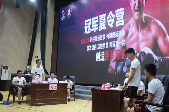 下午先是继续练习拳法,同学们经过几天的学习已经可以独自打一套拳了,晚上就是考验他们学习成果的时候,加油!拳法练习过后,吴寿健老师为大家讲解了什么是冠军!“冠军是一种状态”!孩子们认真听讲,受益匪浅。