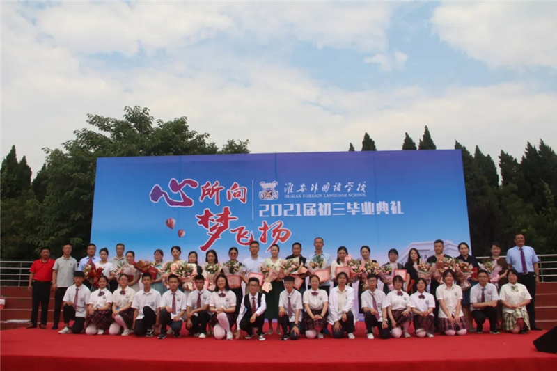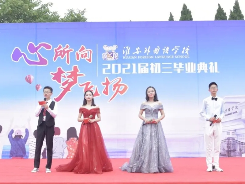 校园里活力四射,师生们笑逐颜开。2021年6月25日上午9点18分,淮安外国语学校在绿茵场隆重举行2021届初三毕业典礼。翔宇教育集团副总校长、淮安总校总校长、淮安外国语校长朱建文,淮安外国语学校常务校长曹国柱,王奎生副校长、张明根副校长、张三平校长助理,初三级部分管领导陆怀珍副校长,全体初三师生以及家长代表共同参加了毕业典礼。活动由初三(1)班王力、初三(9)班郝婧婕、初三(11)班杜宣烨、初三(11)班刘启瑞四位同学共同主持。