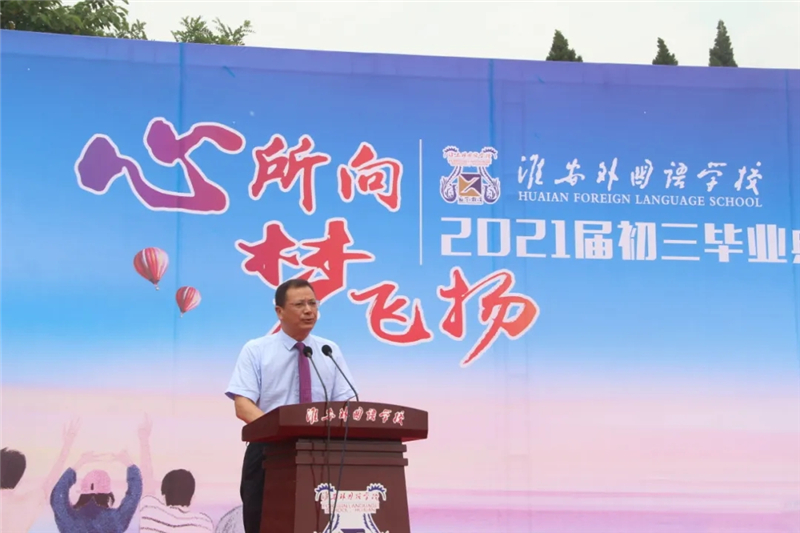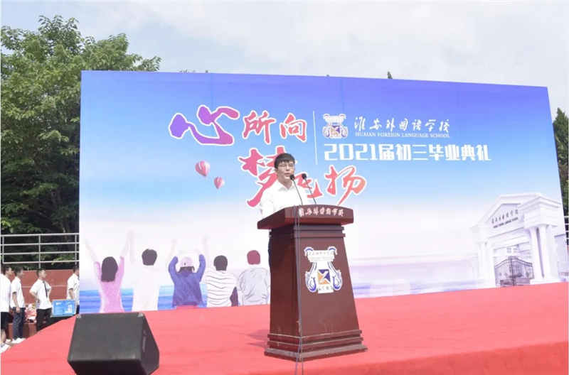 校长寄语,殷切期盼。朱总校长在大家最热烈的掌声中给所有同学寄语。朱总校长祝贺初三毕业生们顺利完成了初中三年的学业,在即将告别母校,开始新的学习生活之际,他送给所有同学四点希望。第一、要保持在母校养成的良好习惯和文明素养;第二、要保持阅读的好习惯,让阅读充盈人生;第三、要有感恩之心,对父母、对社区、对国家要有责任担当;第四、要能独立思考的能力,要有一颗高贵的灵魂,不要与黑暗为伍和解。朱总校长希望每一个淮外毕业生不做利己主义者,不做旁观者,不做沉默的大多数,要能通过勤奋和智慧,让自己强大起来,拥有幸福美好的人生!