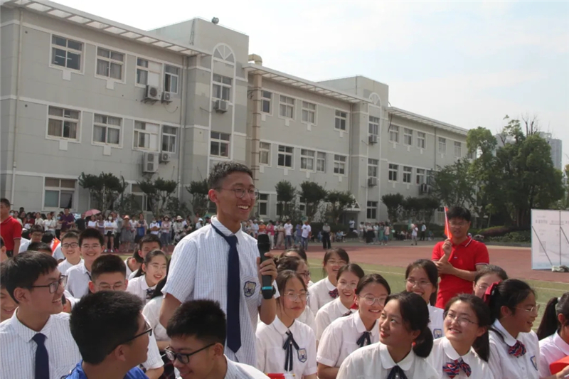 青春回响,感恩老师。当主持人播放录音,让同学们猜是哪一位班主任的话语的时候,此时此刻,绿茵场上掌声雷动。18个班班长代表同学们为舞台上的班主任献花和温暖的拥抱,表达对母校、对恩师、对同学的感谢之情,感恩青春路上最初的引路人。在孩子们的心中,淮外的老师们如金匠,日夜敲打锤击,只为把学生锻造成耀眼的金饰,绽放属于自己的华彩。