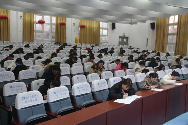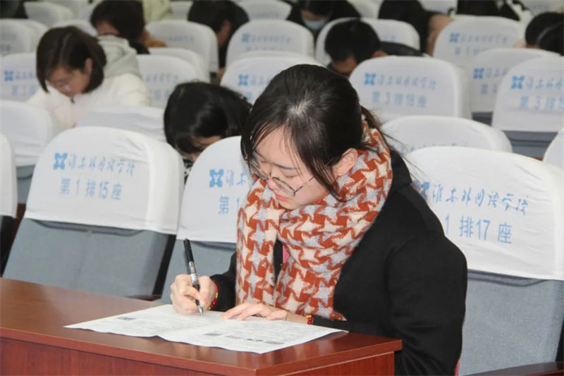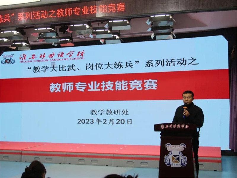 为了更好地落实淮安区“岗位大练兵、教学大比武”文件精神,进一步激发教师们“研考”热情,提升业务素养,加强对新课标、新试题的进一步研究,提高教师专业知识能力素养,夯实教学基本功,2月20日下午,淮安外国语学校在阶梯教室举行了“教学大比武、岗位大练兵”之教师专业技能竞赛暨2022-2023学年度第二次考学活动。分管教学教研工作的张明根副校长,学术管理委员会副主任张诚,教科室主任史学冬巡查监考。
