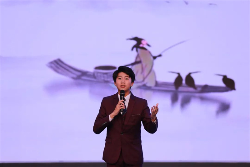 淮安外国语学校初三(11)班唐瑞岐同学入围决赛的作品是《蜀道难》,“蜀道之难,难于上青天,使人听此凋朱颜……”唐瑞岐同学跟随着激昂高亢的音乐,蜀地山脉连绵,横亘东西的壮丽雄奇、险峻巍峨的景象,仿佛呈现在大家眼前,抒发了对祖国大好河山的无比喜爱与赞美。唐瑞岐同学的朗诵赢得了现场评委和观众的点赞和掌声。