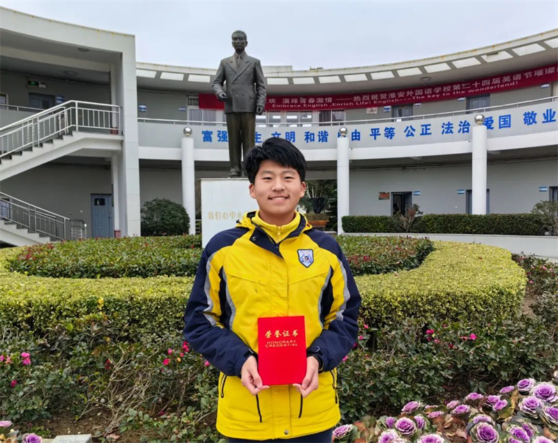 2023年12月5日下午,淮安市教育局、淮安市语委等八部门开展的2023年“书香新时代,‘典’亮新征程”中华经典诵读大赛结果公布,淮安外国语学校初三(11)班唐瑞岐(原初二(6)班)诵读的作品《蜀道难》荣获特等奖(指导老师:张诚),初三(2)班吕浏奕(原初二(2)班)诵读的作品《春江花月夜》荣获三等奖(指导老师:张诚),初三(4)班董采薇(原初二(9)班)诵读的作品《周总理,你在哪里?》荣获三等奖(指导老师:赵文静)。张诚、赵文静老师荣获市优秀指导老师奖。