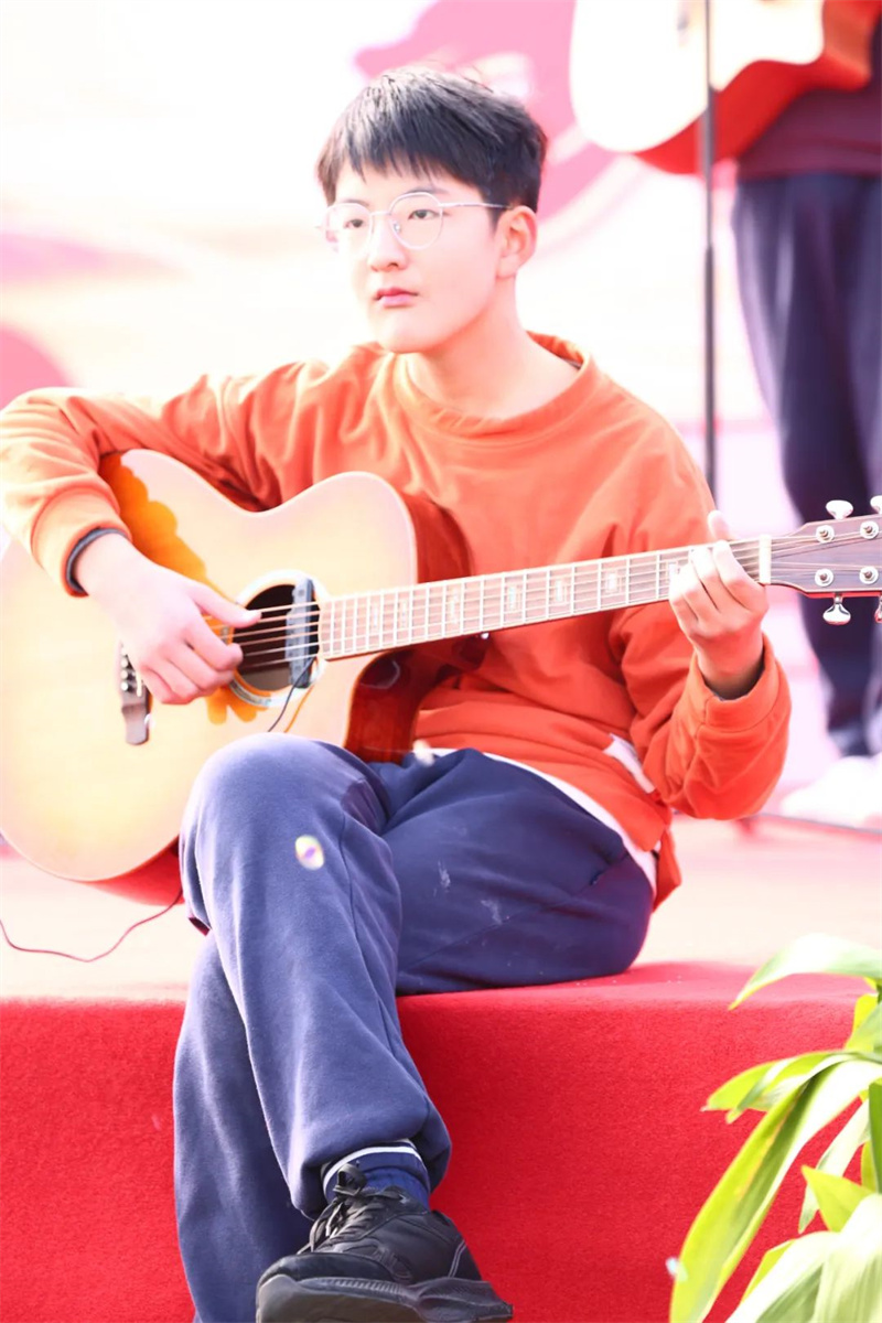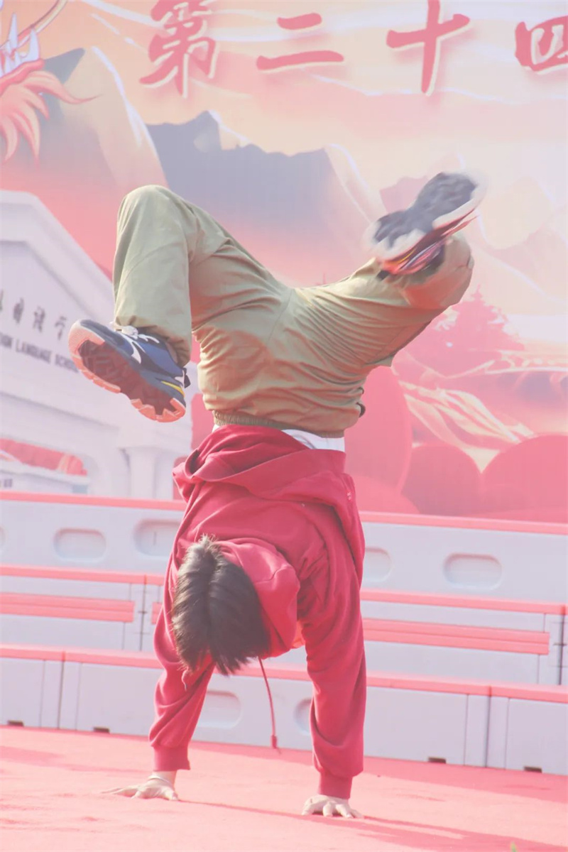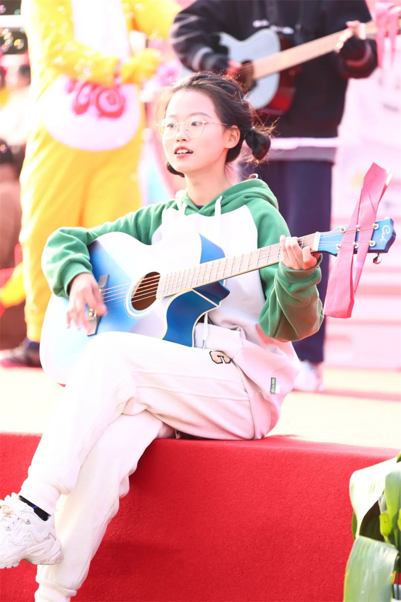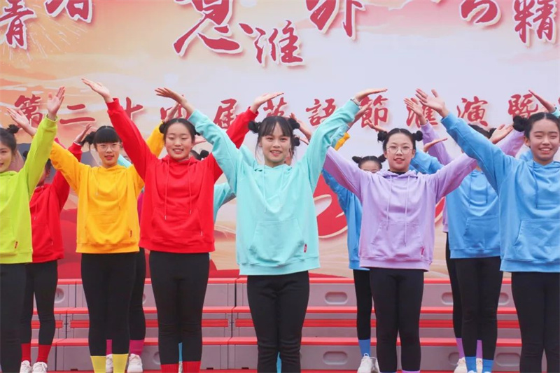 同学们最期待的莫过于舞蹈串烧和歌曲串烧。在舞蹈串烧《最青春·向未来》中古典舞、街舞、团体舞等各类舞蹈交相辉映,卢总校长、高总校长及校务会各位校长们更是上台参与到同学们的表演中,一起舞出青春,舞出风采,舞出淮外人的璀璨明天。而歌曲串烧《梦想的乐章》更是曲风各异,但相同的是同学们那颗不变的逐梦之心。