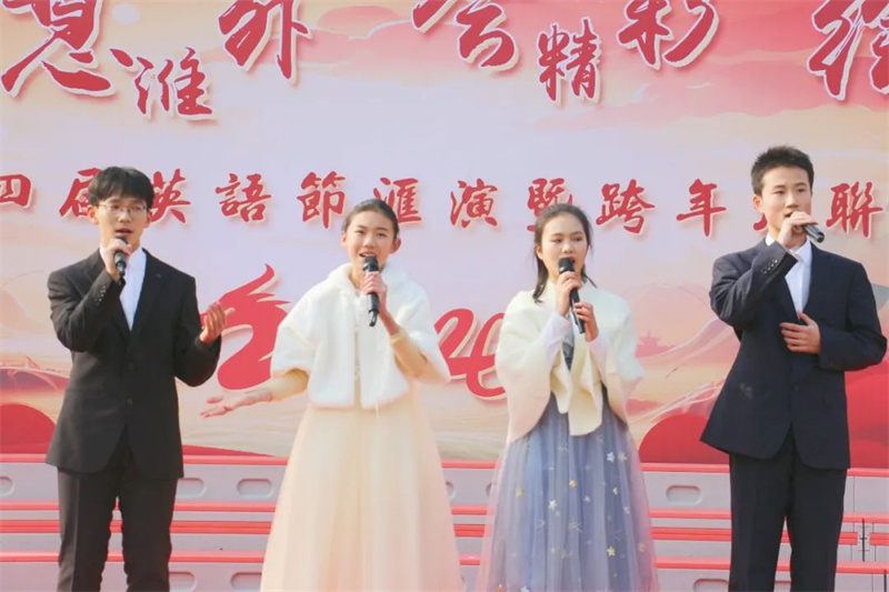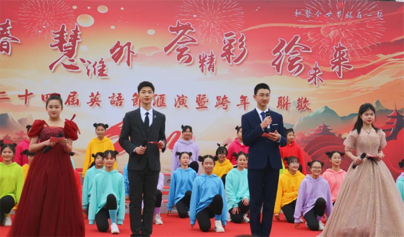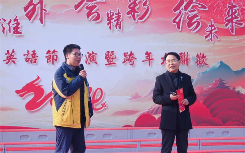 冬天的淮外诗意盎然,温暖如春。12月29日12点38分,淮安外国语学校第二十四届英语节汇演暨跨年大联欢盛大开幕。翔宇教育集团总校长卢志文、翔宇教育集团常务副总校长、淮安总校校长、淮安外国语学校校长高立顺携校务委员会全体成员及全体师生与部分家长、社会各界朋友齐聚一堂,共同见证了这精彩纷呈、激情四溢、青春飞扬的节日盛会。活动由初一(4)班郇越文、初二(9)班桂梓航、初三(4)班王浩哲、初三(6)班张蝶、初一(18)班赵思懿、初二(12)班王舒瑶、初三(4)班陈浩然联袂主持。