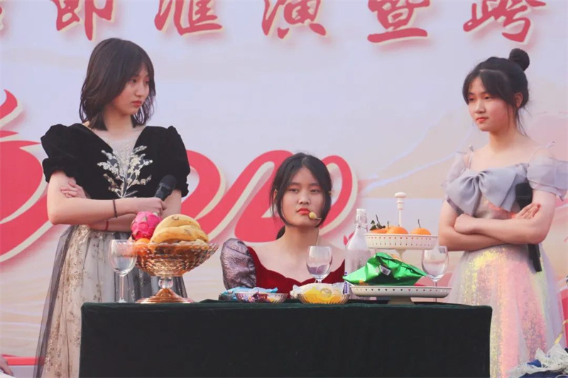 本次联欢会共计16个节目,涵盖了歌唱、舞蹈、相声、小品、音乐舞台剧等多个节目种类,给现场和守在屏幕前的家长和同学们展现了淮外学子的青春风采和多样才艺。来自三个级部的七位主持人分别用中、英文主持了联欢会,主持人昂扬的精神,字正腔圆的表达,风格各异的主持风格给全场观众留下了深刻的印象。