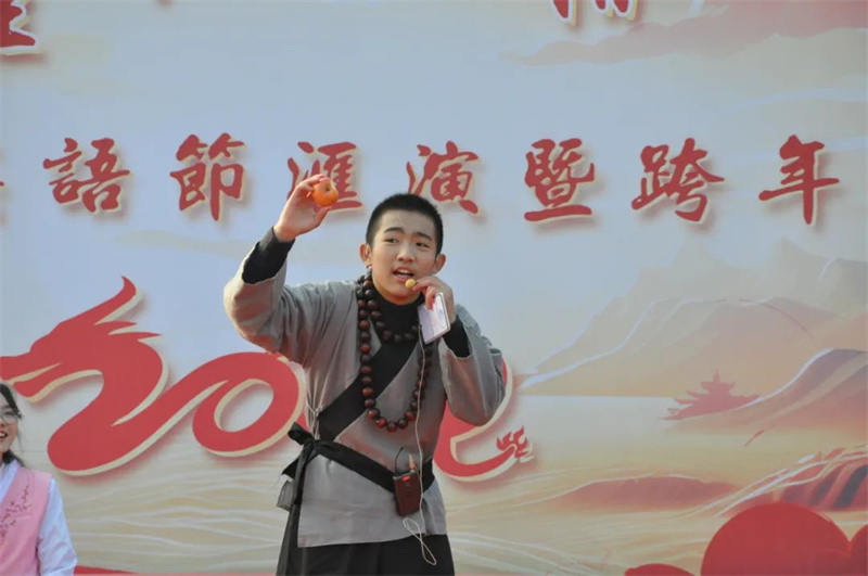 活动由校轻舞飞扬舞蹈社带来的开场舞《龙年祝福》拉开帷幕。同学们身着各色的衣服,青春可爱的装扮与活力四射的舞蹈点燃了全场观众的热情。由初一(4)班的同学们带来的相声《考试疯云》不仅用幽默的语言表现出了对学习的看法,更是通过惟妙惟肖的演绎展现了淮外教师们与学生的良性互动,引发了全场同学阵阵笑声。在朱峰老师的带领下,由初一(12)班和初二(12)班同学联袂表演的歌曲《起风了》,更是唤起了同学们的美好回忆,歌声感人而又充满了对未来的期待。舞蹈《虞兮叹》则是展现了中国古典文化的魅力。