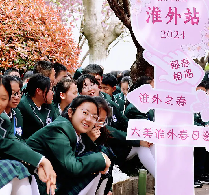 4月11日中午,淮安外国语学校的首届樱花节之文艺汇演活动在樱花大道如期举行。淮安外国语学校王奎生副校长及初一年级学生代表全程参与活动。正值春日,樱花烂漫,赏樱是春天最诗意的约定,每一瓣樱花的飘落,都像大自然写给春天的情书。