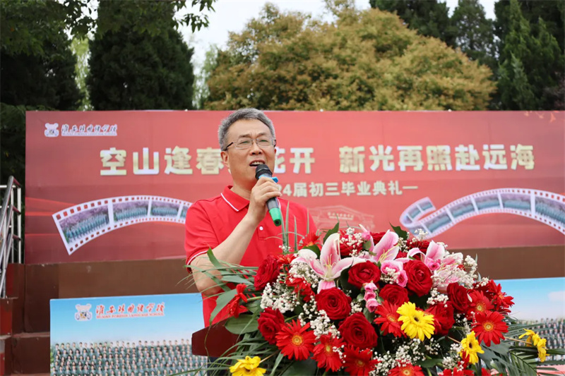 颁发毕业证,逐梦新篇章。“我们从五湖四海来,到天南地北去。”毕业不仅是结束,更是新的开始,新的梦想的启程。常务校长曹国柱、张明根副校长、级部赵国武主任、张虎城主任为初三学生颁发毕业证书。初三(4)班王浩哲同学作为学生代表发言。他说:“让我们带着梦想,带着希望,带着决心,去迎接新的挑战,去创造新的辉煌。让我们永远保持对知识的热爱,对人生的热情,对世界的好奇。在即将告别这个熟悉而亲切的地方时,我希望我们都能够怀揣着对未来的期待,对梦想的热忱,以及对这片土地的感恩之心,大步向前。”