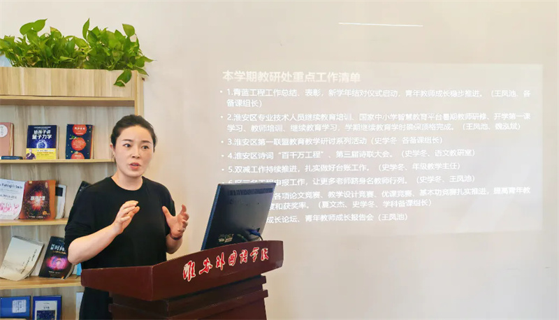 9月13日上午,淮安外国语学校教学教研处在和空间召开了月度研修会议。分管教学教研工作的副校长李文婷、教学处主任夏文杰,教学处副主任韩黎明、教科室副主任王风池、全体教研室主任和备课组长参加了培训会,会议由教科室主任史学冬主持。