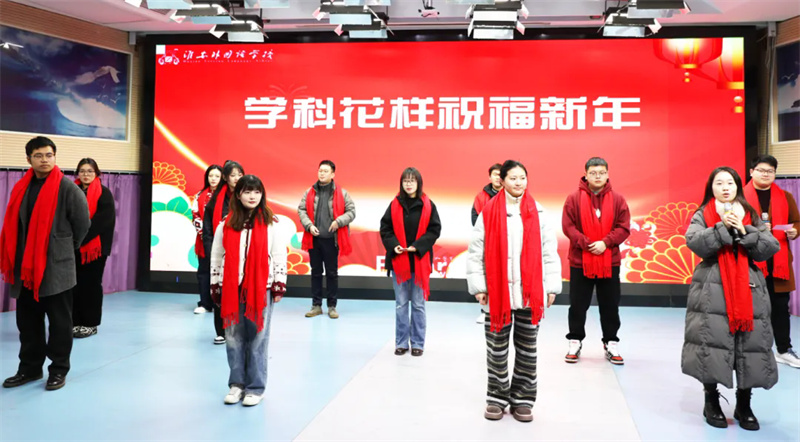 在新年祝福环节,各学科优秀教师代表用独特的学科语言,为大家送上了别出心裁的新年祝福,展现了淮外教师的专业风采和创新精神。