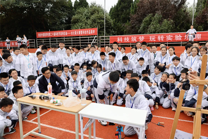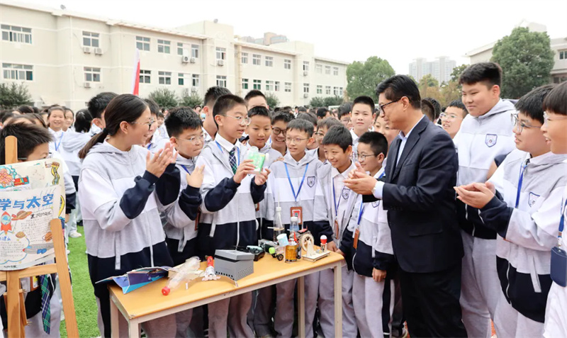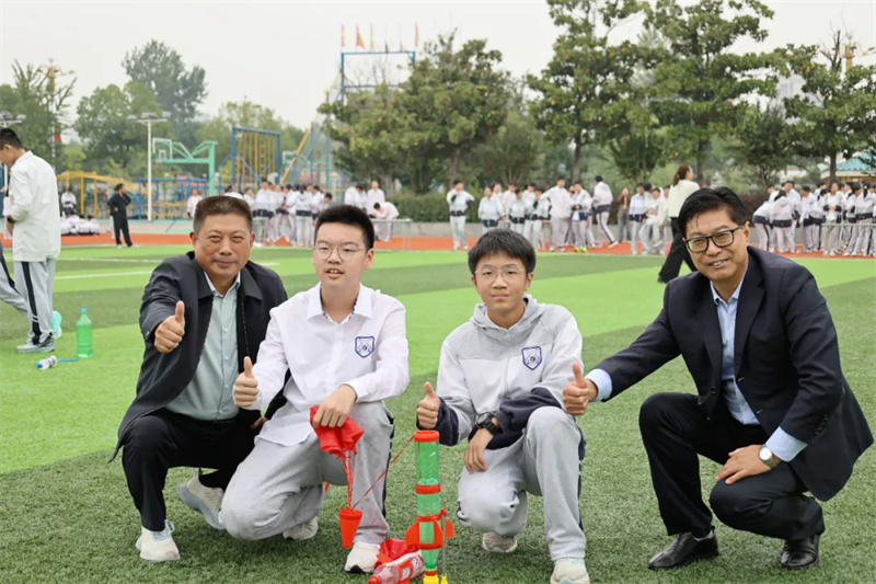 秋高气爽,青春飞扬。为激发学生的科学探索热情,全面提升实践创新能力,10月14日上午,淮安外国语学校“水火箭大赛暨科技作品现场展评”科技节专项活动在学校田径场火热上演。本次活动集趣味、创意与科学于一体,为同学们搭建了一个展示聪明才智与动手能力的广阔平台。
