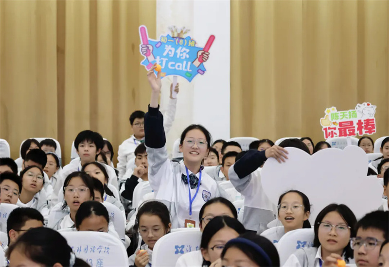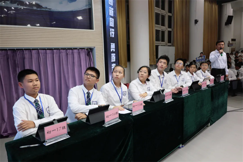 当晚的比赛现场气氛热烈,秩序井然。为增强班级凝聚力,各班级精心选派优秀合作小组成了观赛方阵,同学们手持印有本班参赛选手照片和加油口号的宣传牌,成为了赛场一道亮丽的风景线。各年级部还安排了专人负责现场纪律督查,确保了整场活动在热烈而有序的氛围中进行。