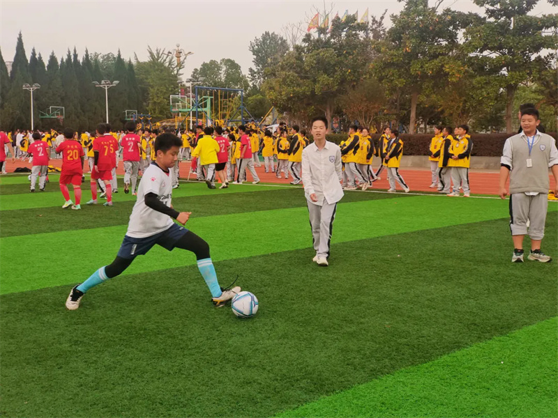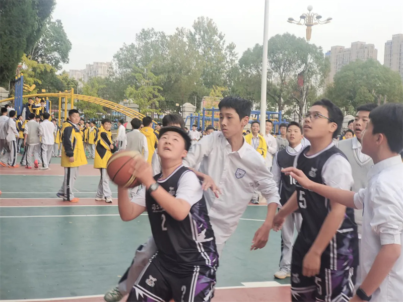阳光正好,青春飞扬。10月29日下午第四节课,淮安外国语学校初一年级快乐大课间活动精彩纷呈,备受瞩目的“校长杯”篮球足球联赛战火持续升温,初一学子们在赛场上挥洒汗水、追逐梦想,用激情与拼搏为校园注入蓬勃生机。