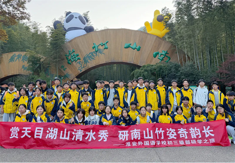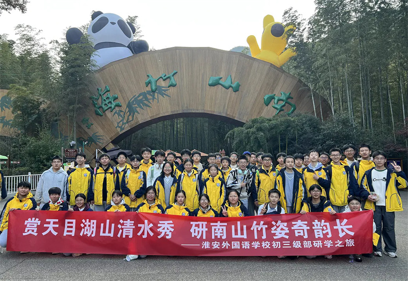 2025年11月22日,初冬的暖阳洒满大地,淮安外国语学校初三年级的学子们怀着满心憧憬,乘坐大巴奔赴常州天目湖与南山竹海景点,开启了一场“亲近自然、感受生命、体验成长”的研学之旅。本次活动以“知行合一”为核心,让毕业班的孩子们在自然与人文的浸润中开阔视野、锤炼心智,厚植家国情怀。