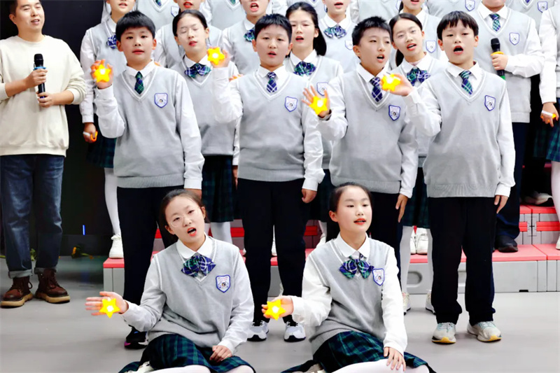本次比赛还通过官方抖音账号进行线上同步直播,让未能亲临现场的家长与社会各界朋友也能实时感受比赛的精彩。直播间互动踊跃,好评不断。尤其令人感动的是,学生家长和班主任老师也热情参与到班级的表演环节中,或同台献唱,或登台指挥。师生同乐、家校联动的温馨场面将活动一次次推向高潮。
