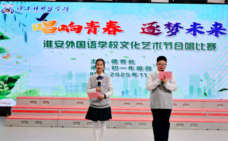 11月23日晚,淮安外国语学校校园文化艺术节之初一级部“唱响青春,逐梦未来”班歌比赛在学校阶梯教室隆重举行并圆满落幕。初一级部17个班级分为两批,依据赛前抽签顺序依次登场,为现场观众及线上网友奉献了一场精彩纷呈、活力四射的视听盛宴。