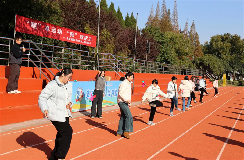 11月26日上午大课间,冬阳和煦,淮安外国语学校的操场上早已人头攒动,欢声雷动。教职工趣味运动会健身活动继续激情上演。初一、初二、初三的老师们放下粉笔,走上赛场,师生同乐。