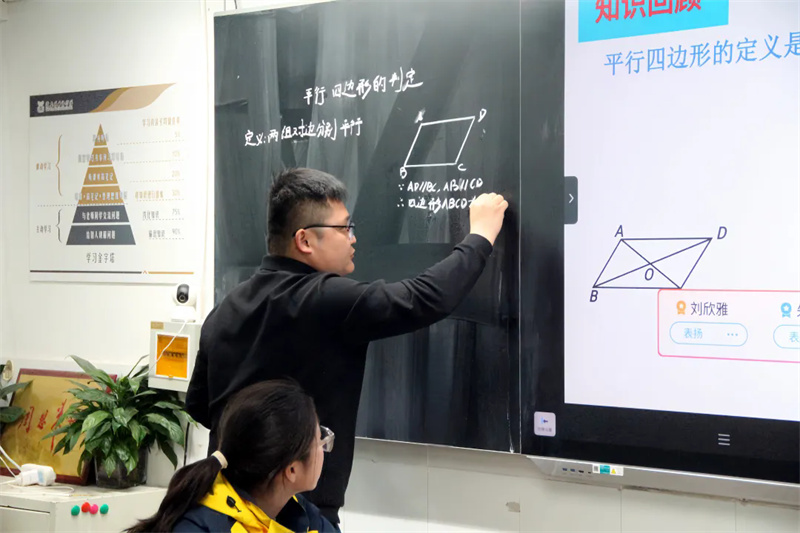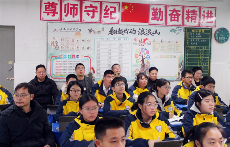 行走在校园里,浅冬的诗意在花草间悄然流淌,浓厚的文化气息扑面而来。张艳副主任带领大家边参观边讲解。随后,他们来到初二(1)班,肖春凯老师呈现了一节精彩的数学课,充分展示了平板在日常教学中的使用过程。