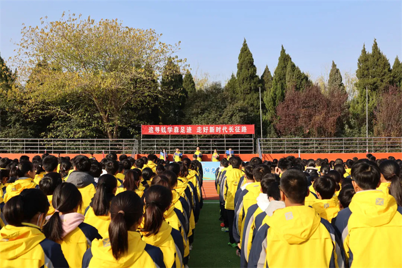 “同学们,你们生逢强国盛世,肩负着科技报国、民族复兴的时代重任。愿大家以钱学森先生为榜样,将青春理想融入国家伟业,做和整个世界站在一起的现代中国人。”赵树青校长寄语道。