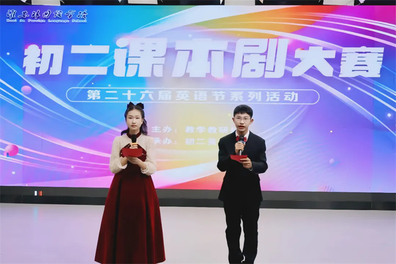 冬夜微寒,阶梯教室内却暖意融融、星光璀璨。12月10日晚,淮安外国语学校第二十六届英语节系列活动之英语课本剧表演大赛在此隆重举行。一场融合语言魅力、戏剧张力与青春创意的艺术盛宴拉开帷幕,掌声与欢笑穿越舞台,点亮了这个充满文化气息的夜晚。