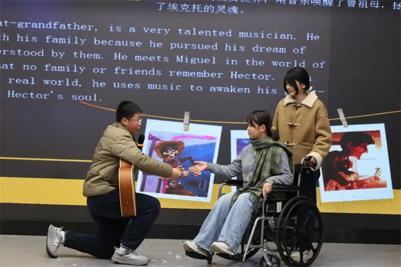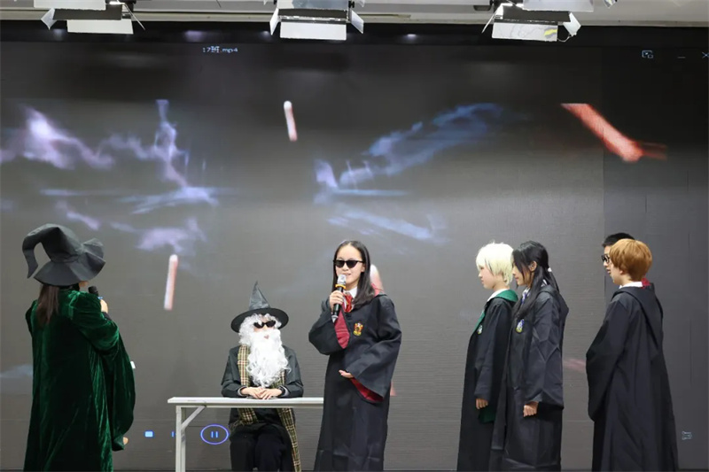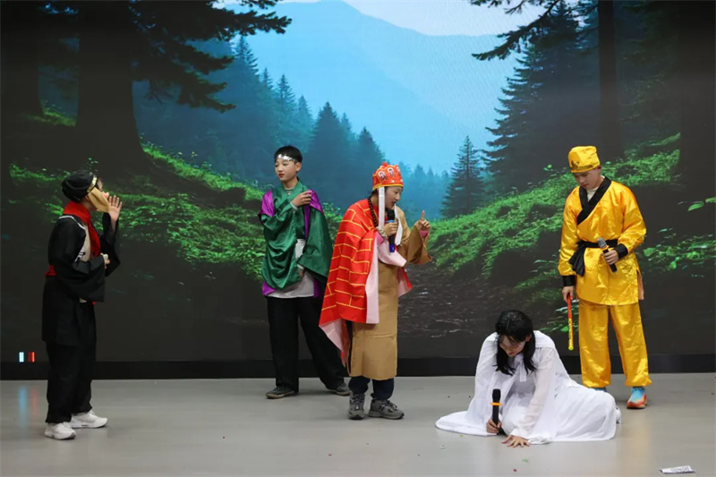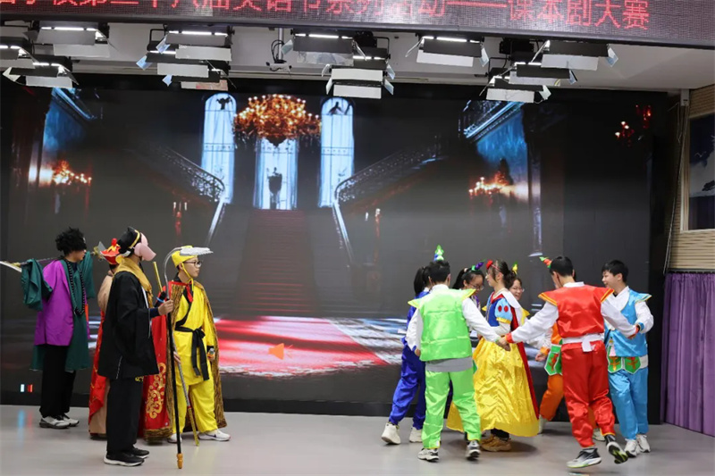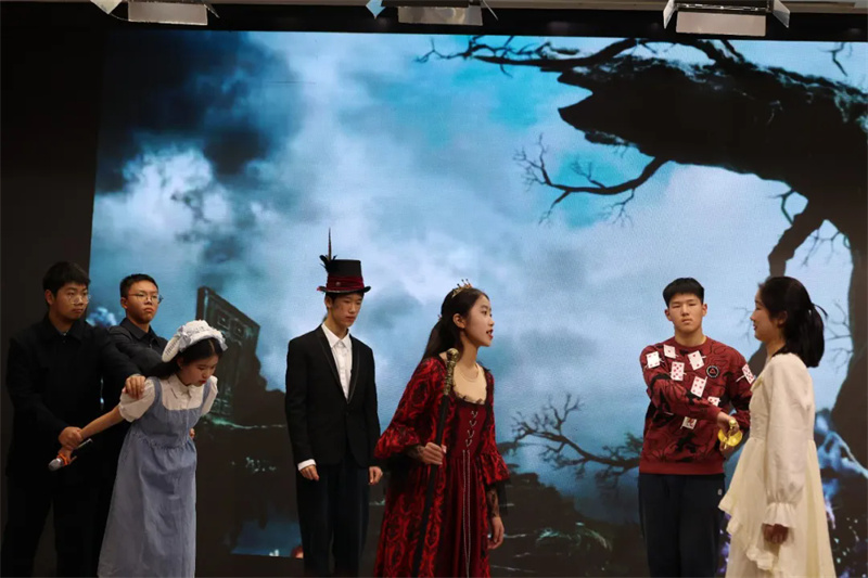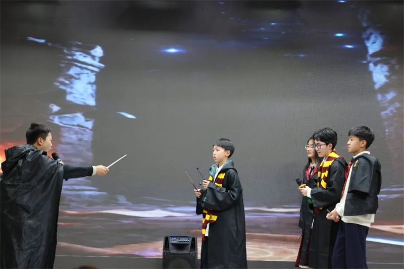 舞台上,聚光灯下,是同学们将平面文本转化为立体艺术的魔法时刻。各参赛团队在忠于原著精神的基础上大胆创新,对经典课文进行富于时代感的改编与重构。有的剧组将《三打白骨精》的台词与现代校园生活巧妙嫁接;有的在《哈利波特》中融入中国传统文化元素。每一个细节都凝聚着同学们对戏剧的热爱与对英语的驾驭能力。