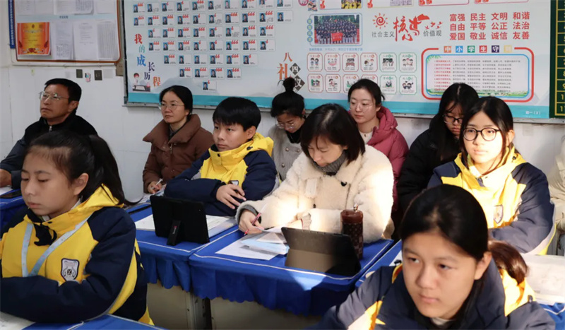 “做中学+用中学+创中学”的实践范式贯穿所有课堂。物理课上,赵月蓉老师让学生用平板实时记录实验数据;化学课上,陶露老师引导小组合作探究溶液奥秘;政治课上,袁雪老师以“不同历史时期青少年的价值追求”树立人生目标;地理课上,沈婷老师带学生用地图软件规划交通线路。初三8班学生反馈,“这样的课堂太有意思了!”“我们小组合作完成了超酷的项目!”“原来学习可以这么玩!”