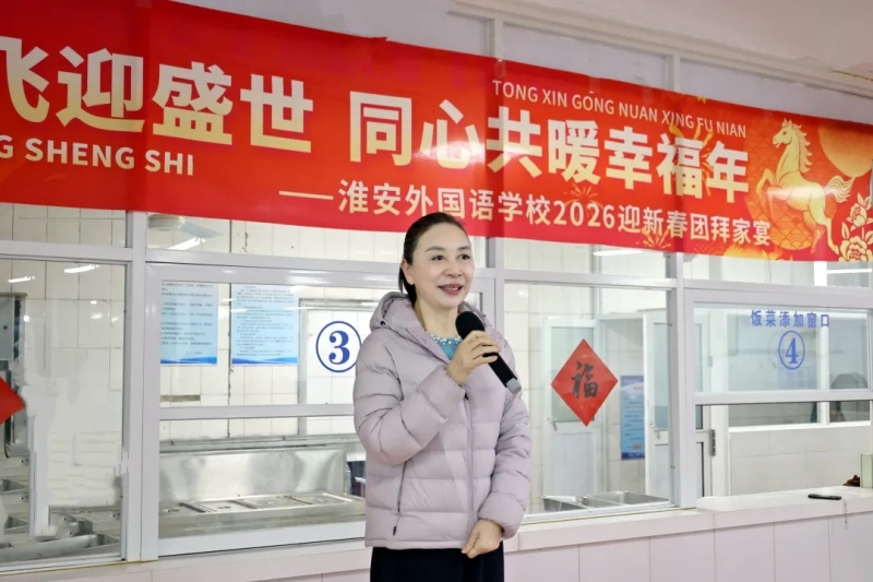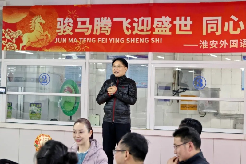 “我们齐聚一堂,盘点收获,品享果香,展望未来!谢谢团队中的每一位!因为你们的每一份付出都值得铭记!”赵树青校长致辞。他说:回眸处,是春华秋实的芬芳,更是静水深流的耕耘;坚守处,是教书育人的本职,更是星光引路的灯塔;沉淀时,是岁序给予的留白,更是生命能量的积蓄;眺望时,是教育理想的奔赴,更是脚下道路的延展;祝愿时,是岁月安宁的祈愿,更是家园情深的牵念。淮外有你,真好!