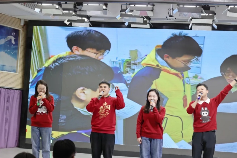 “那黑墨镜真帅气呀!花棉袄搞笑哦!她那个嗓音真不错......”表演者尽兴发挥,观众们点赞不断。各级部教师轮番登台、各展所长:歌曲《海芋恋》温柔婉转、情意绵长;《最初的梦想》铿锵有力,唱出教育人的初心坚守;舞蹈《张灯结彩》喜庆热烈,洋溢浓郁年味;一曲《如愿》悠扬治愈,传递美好期许;六位青年教师带来舞蹈“Zoo”,舞姿灵动、朝气满满,尽显活力与风采。
