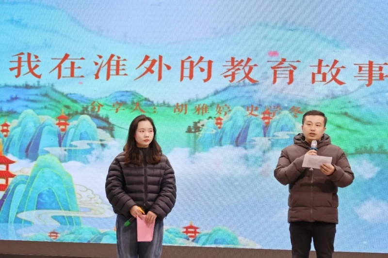 郭原志、邵逸凡老师从教学教研方面诉说在淮外的成长,感谢学校每一次提供展现自我的平台,感谢备课组老师的每一次无私帮辅;史学冬、胡雅婷老师从班级管理方面诉说回忆美好,陪伴学生走过每一天确实辛苦,更多是从学生那里感受到青春的朝气与蓬勃。