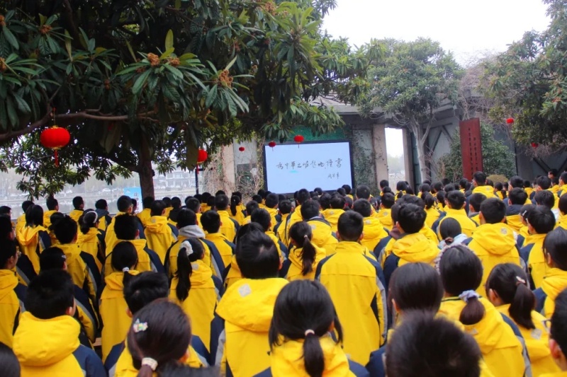 “我们要以周恩来总理为榜样,牢记‘为中华之崛起而读书’的誓言,树立远大理想,争做堪当民族复兴重任的时代新人!”淮安外国语学校“周恩来班”学生代表初一(17)班孙墨言的发言铿锵有力,道出了新时代少年的责任与担当,也引发了全体师生的强烈共鸣。
