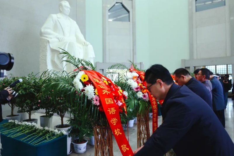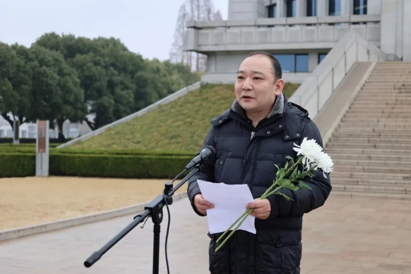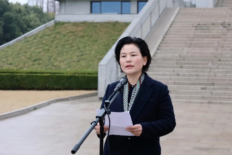 随后,大家在周恩来纪念馆主馆广场集结,缅怀总理献花篮仪式正式开始。周恩来纪念地管理局党委书记、局长祁素娟主持仪式并讲话。她表示,周恩来的光辉事迹和崇高风范是激励后人不断前行的宝贵财富,希望同学们铭记伟人初心,传承红色血脉,将个人理想融入祖国发展大局,努力成长为有理想、有本领、有担当的时代新人。