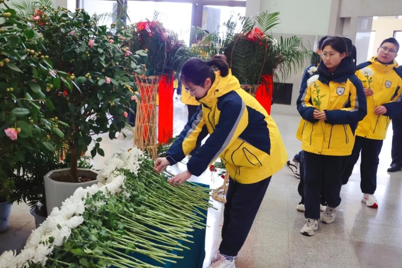仪式结束后,全体师生手持素菊,依次缓步上前,向总理雕像三鞠躬并敬献鲜花。朵朵白菊,寄托着对总理深切缅怀,也象征着崇高精神在下一代心中永远绽放。