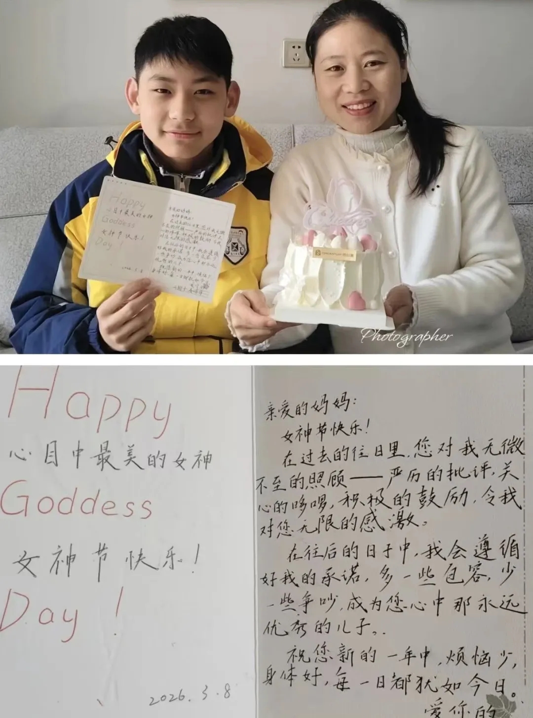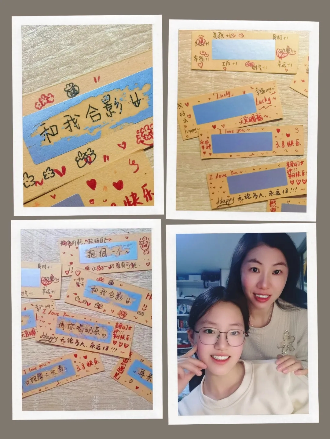 周日上午,这些感恩券被孩子们亲手送到妈妈、奶奶手中。随之而来的,是一张张幸福合影——有人紧紧抱着妈妈,有人搂着奶奶的肩膀,笑得露出八颗牙齿。镜头里,春光正好,岁月温柔。