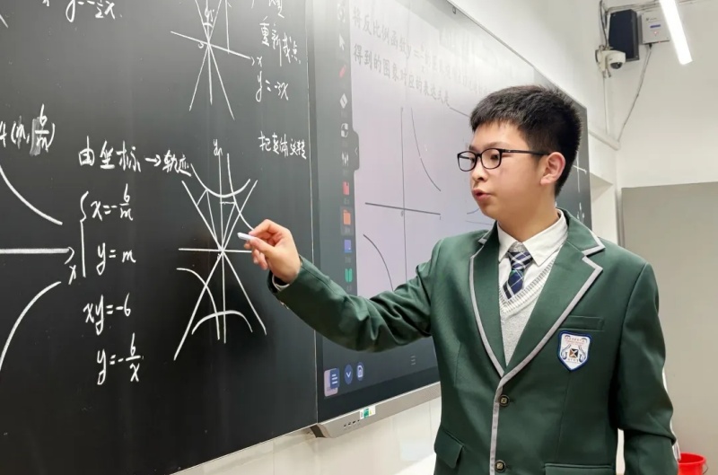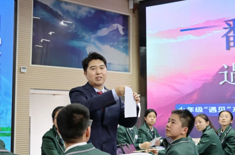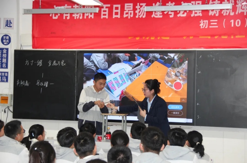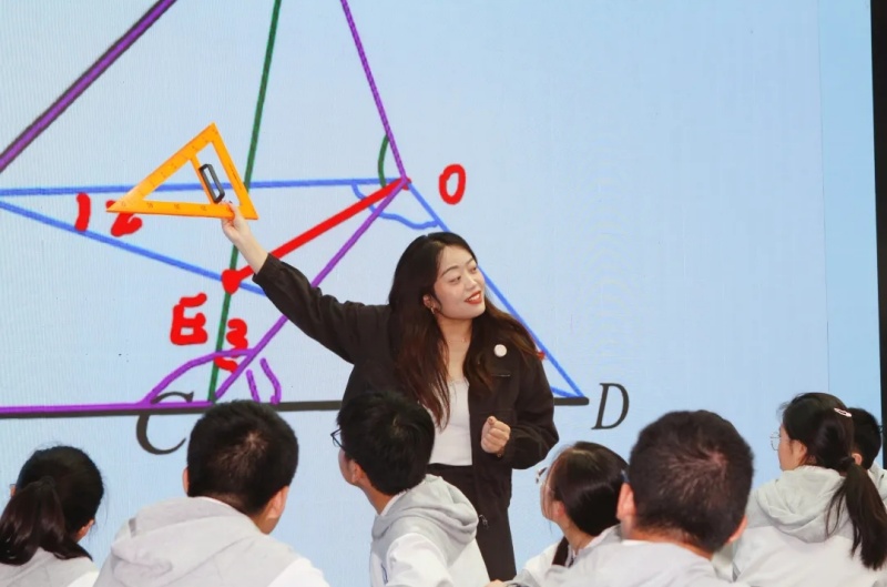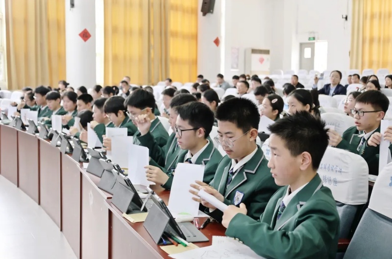 课堂中,AI技术深度融入教学各环节:几何作图动态演示、英语沉浸式交际、文言文角色生成、班会课主题可视化……充分展现了人机协同、提质增效的教学新样态。听课老师们纷纷表示,AI已成为助力课堂减负增效、赋能教学升级的重要工具。