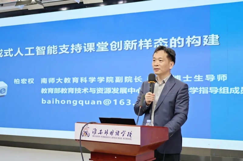 南京师范大学柏宏权教授以《生成式人工智能支持课堂创新样态的构建》为主题做了专题讲座,系统阐述了数智技术与教学融合的路径,为教师向“AI智慧导师”转型提供了理论指引与实践策略。