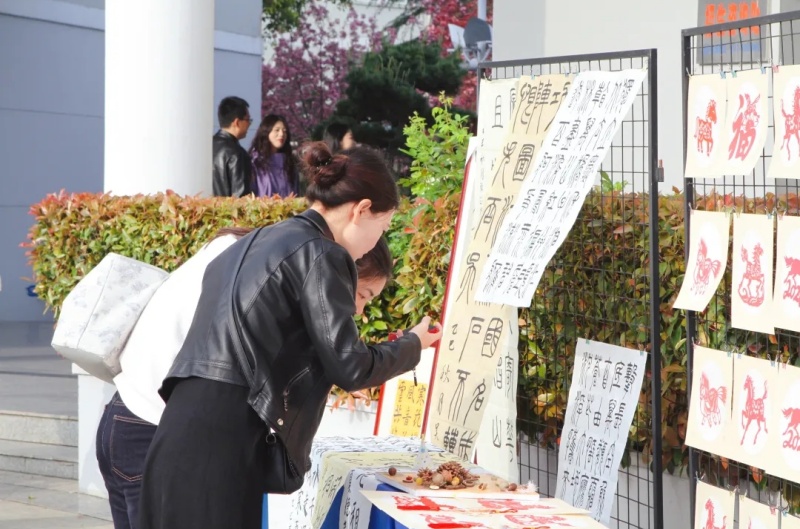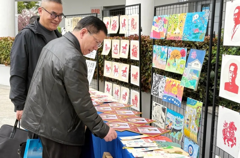 作品展览:风筝制作、剪纸、绘画、文创等手工作品在银杏大道和铜像广场展出,展示淮外学生不一样艺术素养与创造力。