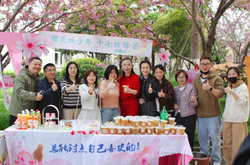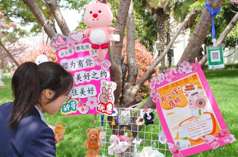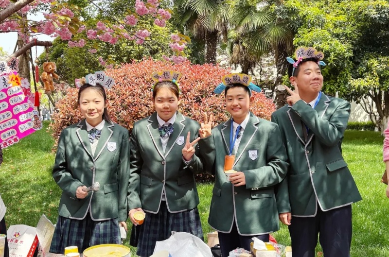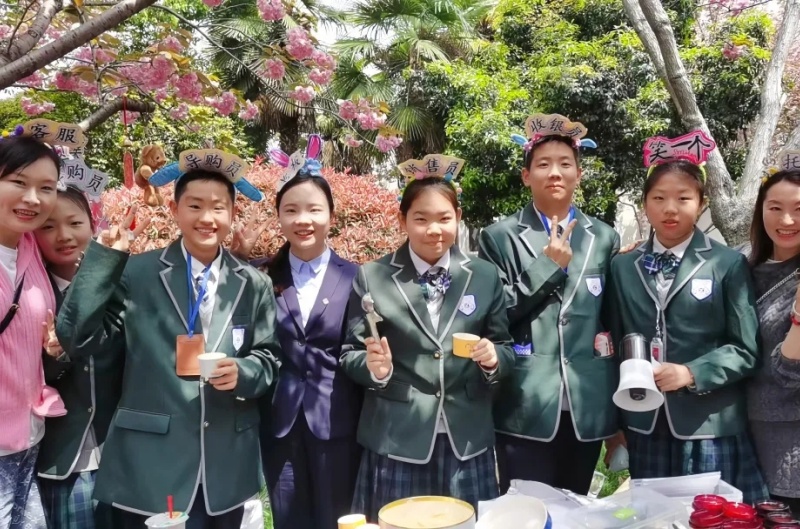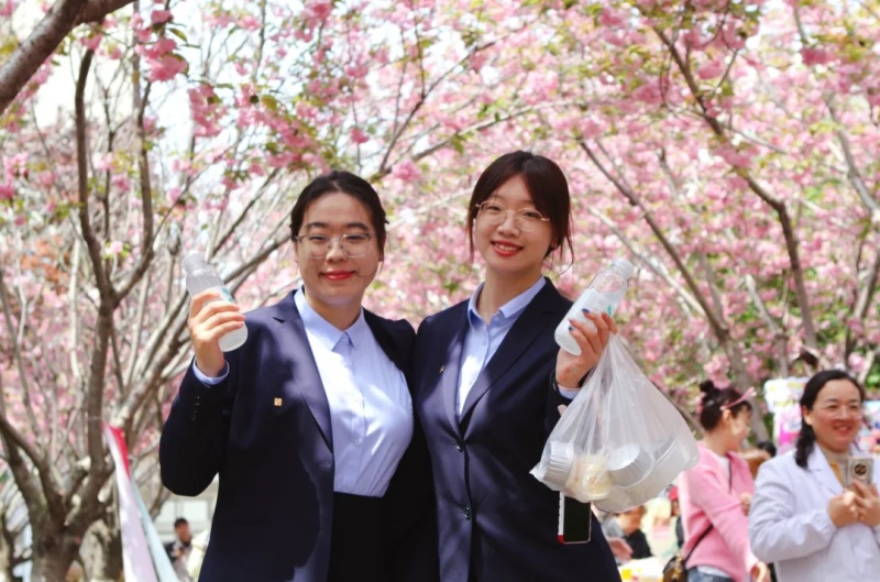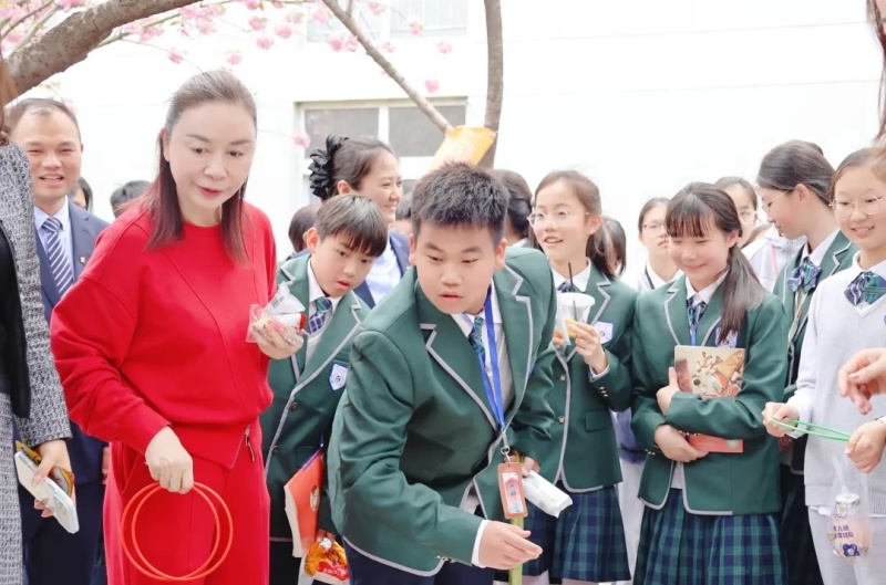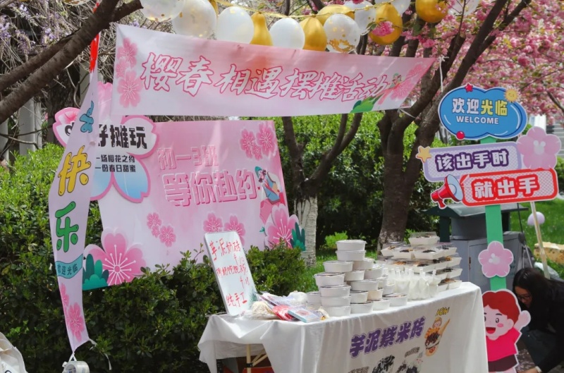“董事长请我们套圈啦!”欢呼声此起彼伏,王玉芬董事长特意来到校园,和孩子们一起赏樱花、逛樱花市集,小可爱们笑容满面。各班摊位琳琅满目:甜点试吃、手工好物、趣味游戏……各班的同学们化身“小掌柜”“推销员”“收银高手”,在实践中学习沟通、协作,甚至初试“财商”。春风拂过,樱瓣轻落,市集里洋溢着浓浓的烟火气。