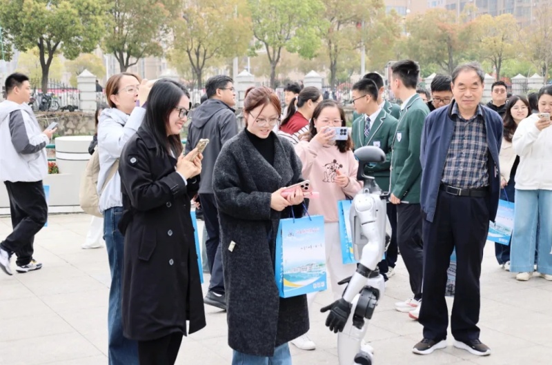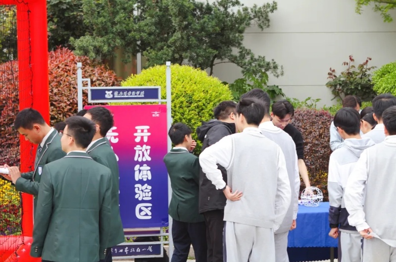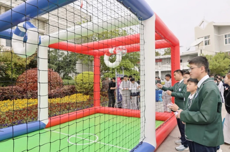 这边,机器人互动、机器狗表演、航模无人机控飞、篮球无人机试玩,各区域都围满了好奇的同学,科技感瞬间拉满。