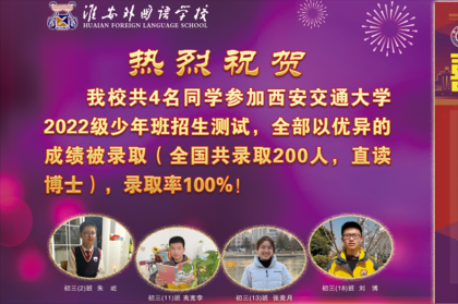 淮外4名学子参加西安交大少年班选拔,全部录取!