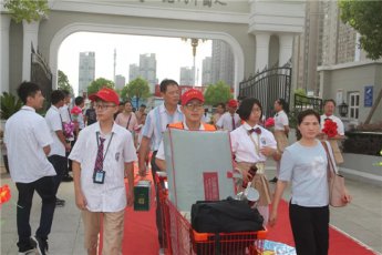 时间:2019-09-03 11:12:16 浏览:7532019年9月1日,初二的同学们以新的身份重回淮外校园, 熟悉的校园依旧似家的模样,温馨洁净。 暖心的服务 拎着大包小包的家长和同学刚踏入校园,身穿马甲、等待在校门口的志愿者同学们就飞奔至他们面前,将行李放至手推车上,安全护送至宿舍。十三四岁的少年...