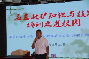 时间:2019-09-03 11:14:37 浏览:699为强化学生应急救护知识与技能,提高学生珍爱生命的安全意识,营造安全和谐的学习氛围,8月31日下午,淮安区红十字会、淮安区教体局关工委以及淮安外国语学校联合举办了应急救护知识与技能培训,未来领袖特训营近千名营员和辅导员全程参与培训。 培训伊始,...