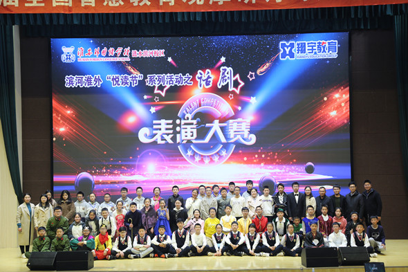 2019年4月12日晚滨河淮外初一年级学生齐聚校报告厅,组织了“悦读节”系列活动之话剧表演大赛。