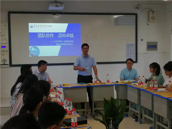 初一级部主任孙利林以“团队协作,迈向卓越”为主题,就新学年的工作向老师们提出了要求,并对即将开展的未来领袖特训营的工作做了详细的部署。