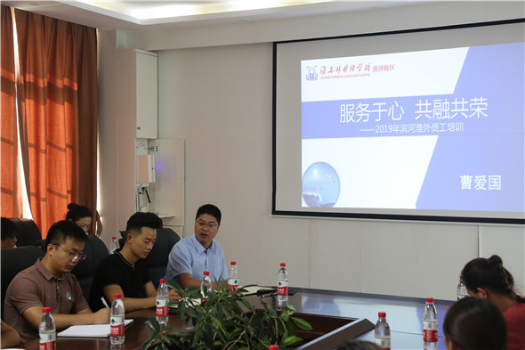 滨河淮外的成功离不开先进的文化和精致的管理,更离不开辛勤工作、努力为淮外创造社会美誉度的员工们。曹主任向他们介绍了校园内工作的主要分工情况与细则,希望在新生力量的支持下,促进我校教育教学卓远有效、后勤服务精准细化。希望大家能以“空杯心态”对待工作与生活,强化服务意识,聚力打造教育新环境,让学生们在美丽校园中怀揣美好轻松的心境成长学习,以此做到真正的“环境育人”。